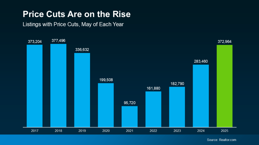 Since homes are taking more time to sell, some sellers are choosing to lower their asking prices to draw buyers back in or speed up the process. And that’s to-be-expected. According to Realtor.com, 19.1% of listings had a price cut this May (see graph below):